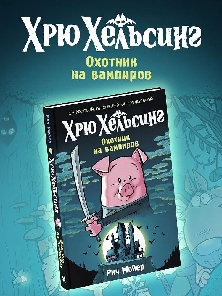Команда классных друзей, неожиданный злодей и одна очень нервная курица — такое нельзя упустить! Скорее читайте этот комикс для детей и взрослых! Он розовый. Он смелый. Он супергерой. Хрю Хельсинг всегда мечтал писать картины и сочинять стихи, однако жизнь распорядилась иначе. Потомок знаменитой семьи охотников за нечистью, он просто обязан взять себя трудную участь — ловить плохишей, причиняющих вред обычным горожанам. Поэтому, когда в замке на утёсе появился вампир и все оказались в опасности, Хрю решил во что бы то ни стало помочь! То, что он встретил на своём пути, снесло бы пятачок кому угодно... Но только не Хрю! Идеальный подарок для мальчика и для девочки — и не важно, сколько им лет! Комикс, который влюбит в чтение. Цветные иллюстрации, очаровательные герои и детективная загадка. Предупреждение от издательства: если вы лопнете от смеха, мы не виноваты. Понравится поклонникам мультсериала «Гравити Фолз» и поросёнка Пухли, циклов «Охотники за мифами», «Майнкрафт. Дневник героя в комиксах», «Приключения кота Мэнджи».