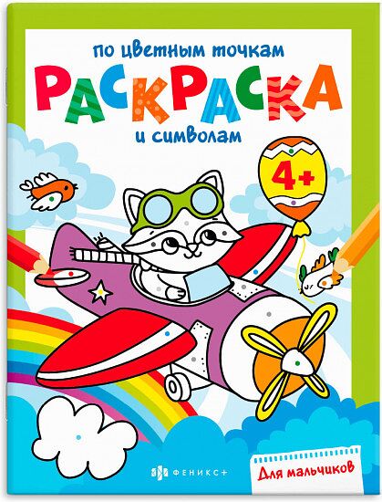 Монстрик на самокате, кот на самолёте и инопланетянин в летающей тарелке так и спешат к тебе в гости, скорее раскрась их по точкам и фигурам! Но будь внимателен, даже очень похожие друг на друга символы могут означать совсем разные цвета!