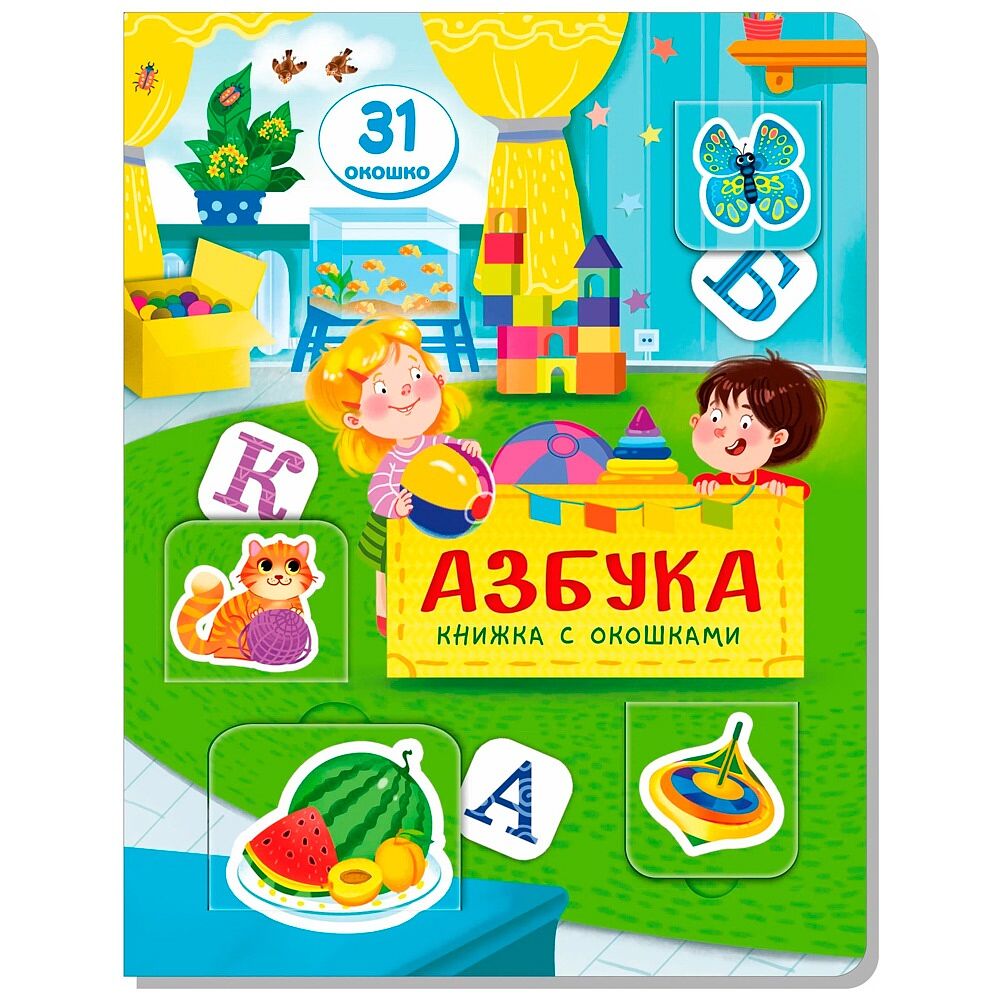 Возраст ребенка: от 0 лет Красочная книжка с окошками предназначена для первого знакомства малыша с буквами. Маленькие окошки-сюрпризы, которые малыши просто обожают открывать и отгадывать, что за ними спрятано, помогут закрепить знания. 5 разворотов и 31 окошко. Юные читатели узнают множество интересных фактов об окружающем мире, получат новые знания и расширят свой кругозор. Такое издание станет прекрасным подарком юным любителям узнавать новое. В книжке прекрасные яркие картинки. Страницы сделаны из плотного картона, поэтому листать книжку будет удобно даже самым маленьким, а книжка еще долго не утратит свой первоначальный внешний вид. С книжкой очень интересно проводить время, а чтение будет укреплять память, развивать воображение, зрительное и слуховое восприятие, внимание