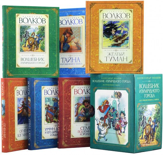 Маленькие читатели окунутся в удивительный мир, где девочка Элли и ее песик Тотошка отправятся на поиски волшебника Гудвина. Героям предстоит познакомиться со Страшилой, Железным дровосеком, Трусливым Львом и сразиться со злой волшебницей. Эта история о дружбе, взаимной выручке и исполнении желаний сделает новогодние праздники по-настоящему теплыми. В комплекте собраны все шесть книг цикла о приключениях в Волшебной стране. Теперь сказок хватит на все каникулы! Благодаря ярким иллюстрациям ребенку будет интересно рассматривать книги и легко узнавать сказочный мир.
