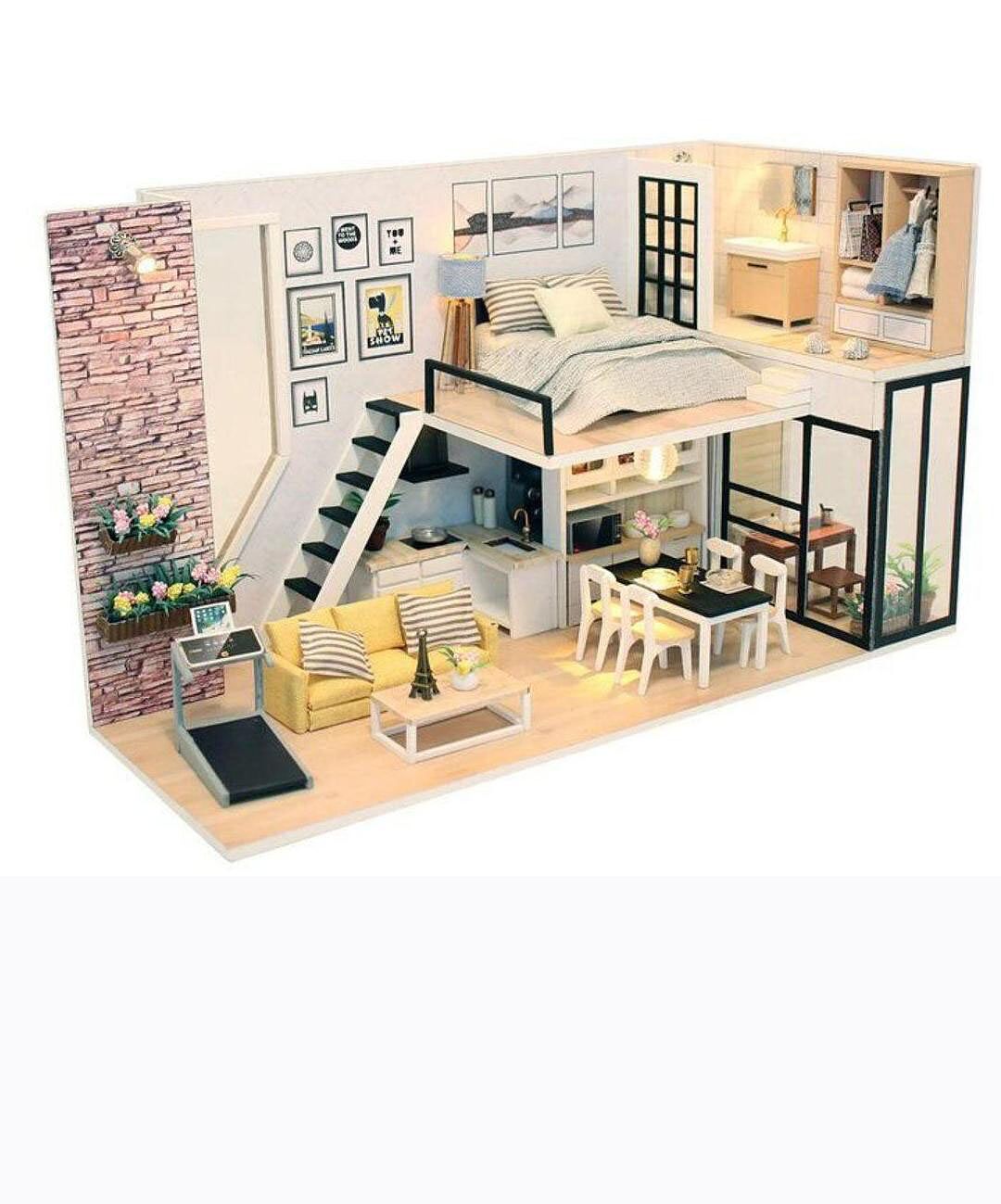 Интерьерный конструктор «Студия в стиле модерн» с подсветкой - это набор для создания удивительно детализированного кукольного интерьера в миниатюре. В студии есть светлая спальня, крошечный санузел, гардеробная, просторная гостиная с диванчиком и беговой дорожкой, уютная обеденная зона с современной бытовой техникой и стильной посудой и даже небольшая лаунж-зона. В наборе, состоящем из 236 элементов, вы найдёте все необходимое для творчества. Сборка мельчайших деталей уютного интерьера поможет развить усидчивость и аккуратность. Завершающим штрихом моделирования станет проводка светодиодной подсветки. Все наборы серии выполнены из качественных материалов и имеют красивую подарочную упаковку.
