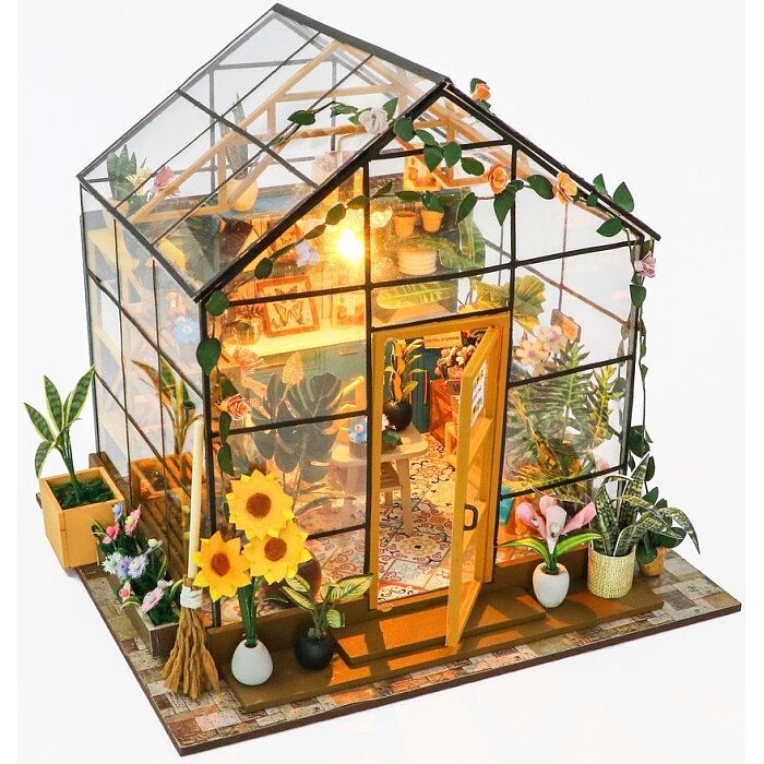 Hobby Day Конструктор интерьерный Зимний сад (120 элементов) Интерьерный конструктор – отличный настольный сувенир. Основная причина, по которой покупают наборы для творчества – мгновенный интерес детей к игрушке и самому процессу. Миниатюра интерьерная обладает важным преимуществом – игрушка не ограничивает творческую сторону человека. Несмотря на наличие инструкции, собирающий может привносить в обстановку различные изменения, реализовывать свои фантазии в создании интерьера. Миниатюрные домики – это не только возможность весело провести время, но и развивать мелкую моторику рук, внимательность и усидчивость. Благодаря ручной сборке миниатюра интерьерная снимает напряжение после занятий в школе. Психика отлично разгружается. У детей во время игры развивается воображение. Покупка миниатюры для творчества – возможность совместного проведения досуга с ребенком, ведь сейчас не так много занятий, которые интересны как молодому, так и более старшему поколению. Данный сложный и красивый румбокс — это не только элемент декора, но и прекрасный ночник с подсветкой. Благодаря встроенным LED-лампам в конструктор деревянный, позволяет использовать его ночью для уютного и комфортного сна. Сборная модель как подарочный светящийся мини дом с цветами – прекрасная альтернатива детским развивашкам и кукольным домикам. Подделка дарит визуальное удовольствие, наполняет эмоциями восторга и умиления. Собранный румбокс хочется рассматривать бесконечно! Уникальный и экологически чистый подарок – то, о чём только может мечтать каждый подросток. В большой набор для подделок входят миниатюрные деревянные предметы интерьера, мебель, растения и другие маленькие детали из натуральных материалов: дерева, бумаги, мягкой ткани, а также канцелярия: клей, кисточка, металлический пинцет, необходимые для сборки. Аксессуары для домашнего комплекса разложены по пакетам и упакованы в красивую картонную коробку 31 х 23 х 4.5 см