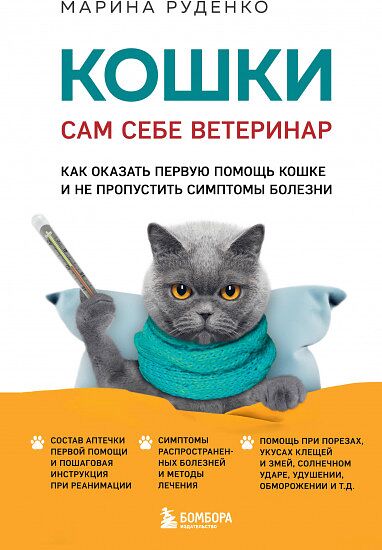 Беспомощное животное не может сказать о своих болезнях, но грустный вид и жалостливое мяуканье заставляет хозяев пушистых комочков чувствовать тревогу и растерянность. Почему кошка отказывается от еды, глубоко дышит или все время чешется? Как осмотреть напуганного питомца и что делать, если его укусила змея, насекомое, собака или другая кошка? Можно ли обрабатывать раны самостоятельно, какого размера должен быть шприц и как правильно его вводить? Понятные ответы на эти и многие другие вопросы дает практикующий ветеринарный врач Марина Руденко. В этой книге вы найдете: • особенности кошачьей физиологии. • очевидные и неочевидные признаки распространенных болезней. • состав аптечки, допустимые дозировки и инструкции по амбулаторному уходу. • методы помощи при укусах, порезах, переохлаждении и тепловых ударах, а также первая помощь при падении с высоты. Эта книга — не просто сухой пересказ теории, в ее основе — богатый опыт ветеринарного врача Марины Руденко. Текст разделен на удобные главы, посвященные самым популярным кошачьим болезням и травмам, способам домашней диагностики и лечения. Понятные иллюстрации дополняют теоретические описания.