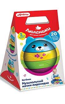 Оригинальная развивающая игрушка для малышей – мячик-пирамидка! Это две игрушки в одной! Ребенок сможет собрать мячик-пирамидку из больших колечек, подбирая их по форме и цвету. Такое занятие прекрасно развивает логику и мелкую моторику. Все колечки – музыкальные: собирая их, ребенок будет слушать забавные звуки, веселые потешки и мелодии («Пошёл котик на торжок», «Кошкин дом», «Топ-топ, топотушки», «Танец зверят», «Дождик» и др.). Собрали мячик – теперь можно его покатать, побегать за ним и повеселиться! Малыши будут в восторге!