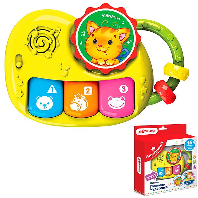 Оригинальное яркое пианино со множеством кнопок предназначено для активных игр и развития мелкой моторики и координации движений. Яркая расцветка развлечет малыша и привлечет его внимание. Игрушка учит пониманию причинно-следственной связи, помогает тренировать моторику и координацию движений, восприятие формы и цвета. Пианино содержит клавиши, различные звуковые эффекты и функции. Работает от батареек. Игрушка привлекает внимание и способствует развитию тактильного, зрительного и слухового восприятия малыша. Игрушки сделаны из прочного и безопасного материала. Бонус для покупателей Пианино Чудесенка – 5 интерактивных сказок для смартфона и планшета. Просто отсканируйте QR-код на упаковке.