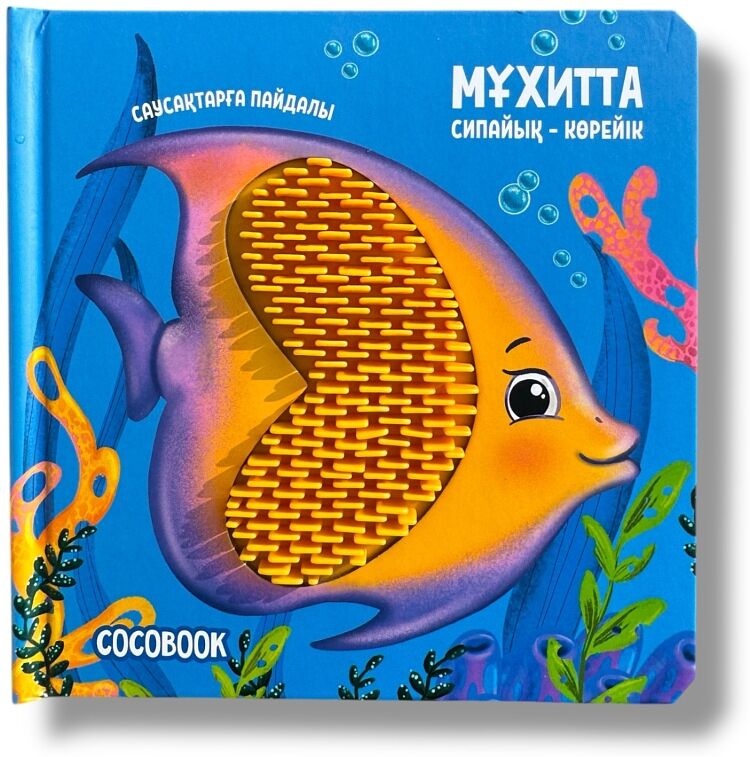 «Сипайық-көрейік» сериясының «Мұхитта» тактильді кітабын оқып, мұхит тереңіне бойлап, ондағы қызықтарды бірге зерттейміз! КІТАПТЫҢ ЕРЕКШЕЛІКТЕРІ: - Әр беттегі тактильді элементтер – жұмсақ, тегіс немесе кедір-бұдыр текстуралар ақпаратты сипап сезу арқылы қабылдау қабілетін дамытуға көмектеседі. - Үлкен әрі жарқын иллюстрациялар – балақай суреттерге бірден назар аударып, зейін қойып ұзақ қарайды. - Тіл дамытады – бала мұндағы тақпақтарды жаттап, сөз үйренеді. - Қызықтырар жұмбақтар – бұл кітапты басқа кітаптардан көңілдірек ете түседі. Жұмбақтарды шешіп, жауабын табу баланың ой-өрісін дамытады. - Мұхитта тіршілік ететін жануарлармен танысу – балақай тасбақа, акула, теңіз кірпісі және т.б. жануарларды біліп жүреді. - Жаңа туған нәрестеден бастап 4 жасқа дейінгі балаларға арналған – балақайдың дамуына пайдалы. КІТАПТЫҢ ПАЙДАСЫ: 1. Сипап сезу қабілетін дамытады: әртүрлі текстураларды сипап, ұстап көру арқылы сенсорлық қабылдау қабілеті жетіледі. 2. Тіл дамытады: кітаптағы өлеңдер сөздік қорды байытып, ой-өрісін кеңейтеді. 3. Қол моторикасын жақсартады. 4. Зейінін тұрақты, қиялын ұшқыр етеді: кітаптың жарқын суреттері мен интерактив бөліктері балақайға кітап оқуға зейін қойып, қиялдай білуге көмектеседі. 5. Берік, сапалы материалдардан жасалған: кішкентайлар кітаптың қалың қартон беттерін жыртып тастамайды. 6. Ата-аналардың демалуына сеп болады: бала мұндай кітаптарды өзі зерттеп, қызықтап оқығанды жақсы көреді, сондықтан ата-ана 30 минуттай бос уақыт тауып, тынығып алады.