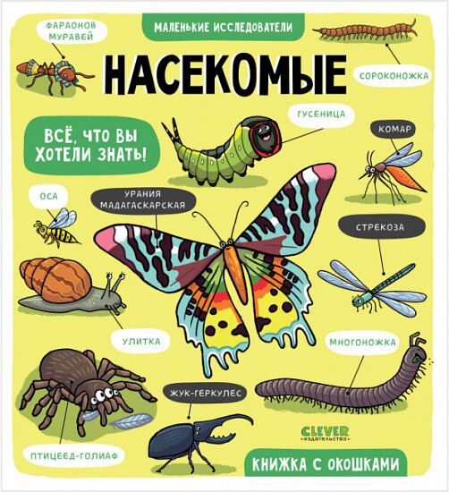 Вы тут, маленькие исследователи? Хотите как следует рассмотреть самых жутких, извивающихся и прекрасных существ на планете? Скорее открывайте окошки и узнайте, как живут, общаются и помогают людям разные насекомые. Удивительные открытия ждут на каждой странице!