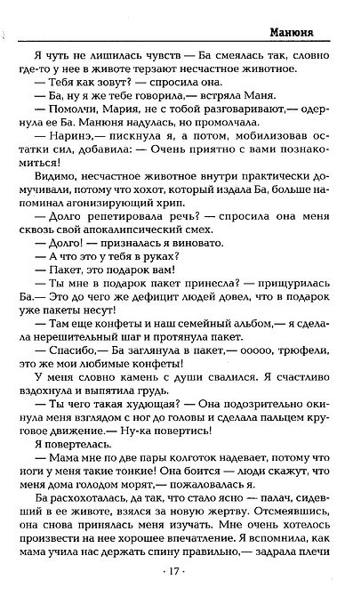 Манюня - светлый, пропитанный солнцем и запахами южного базара и потрясающе смешной рассказ о детстве, о двух девочках-подружках Наре и Манюне, о грозной и доброй Ба - бабушке Манюни, и о куче их родственников, постоянно попадающих в казусные ситуации. Это то самое теплое, озорное и полное веселых приключений детство, которое делает человека счастливым на всю жизнь.