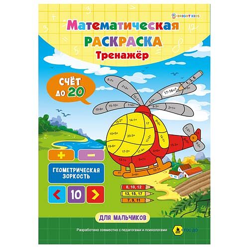 Математическая раскраска А4 ДЛЯ МАЛЬЧИКОВ (РТ-1664) полноцв.8л+обл мел карт, скрепка,195х276 МП