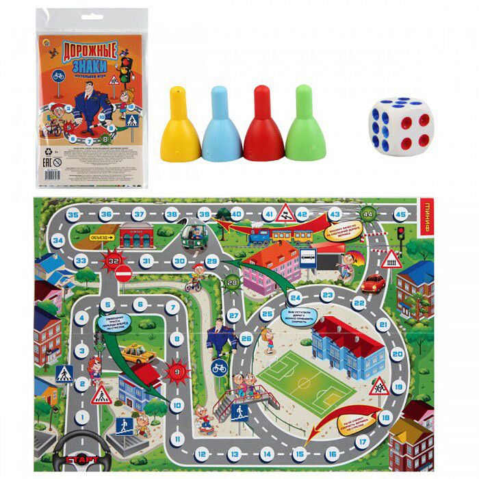 Развлекательная настольная игра для 2-4 игроков.В наборе: игровое поле, 4 фишки, кубик, инструкция.Материалы: картон, пластик.Для детей от 3-х лет.Не рекомендуется детям до 3-х лет.