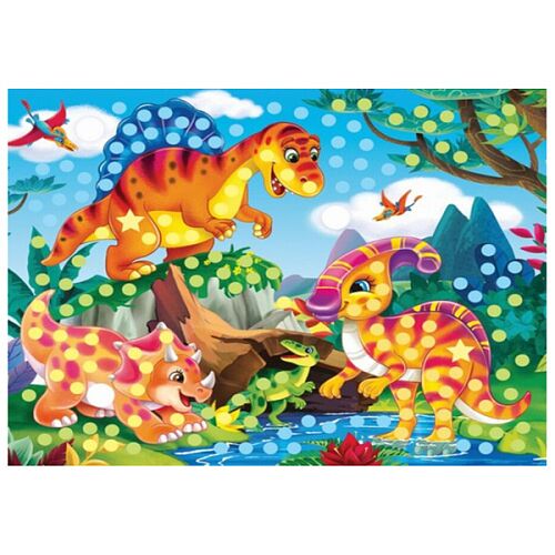 МОЗАИКА ИЗ ПАЙЕТОК. Формат А4. Веселые динозавры у реки