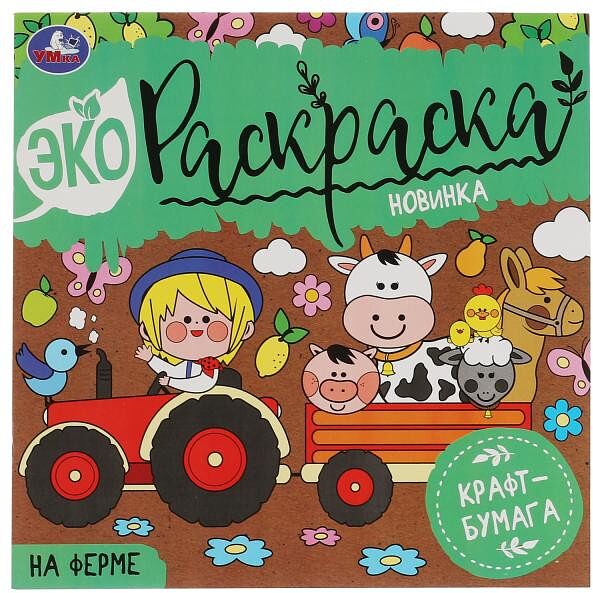 Экораскраска «На ферме» приглашает детей порисовать: — экологичный подход: крафт-бумага. — чёткий контур картинок для раскрашивания. — интересные и разнообразные иллюстрации. — короткие комментарии к рисункам на каждой странице. — удобный формат. На страничках этой занимательной раскраски маленького художника ожидает встреча с животными, обитающими на ферме. Раскрашивая картинки с их изображениями, он научится подбирать подходящие цвета и не выходить за границы контура. Кроме того, с ранних лет ребёнок будет приучаться к тому, чтобы нужно беречь нашу планету и заботиться об экологии: бумага имеет право на вторую жизнь, и после переработки из неё могут получаться замечательные вещи, такие как, например, эта экораскраска из крафт-бумаги. Благодаря удобному размеру раскраску можно взять с собой в дорогу.