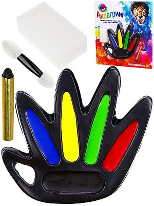 Набор аквагрима для детей(6 цветов, карандаш 1шт, спонж 1шт, аппликатор 1шт) ( Арт. КС-4625)