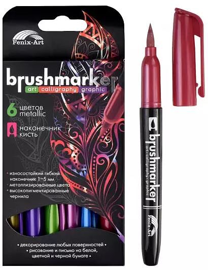 Набор браш-маркеров МЕТАЛЛИК 6 цветов