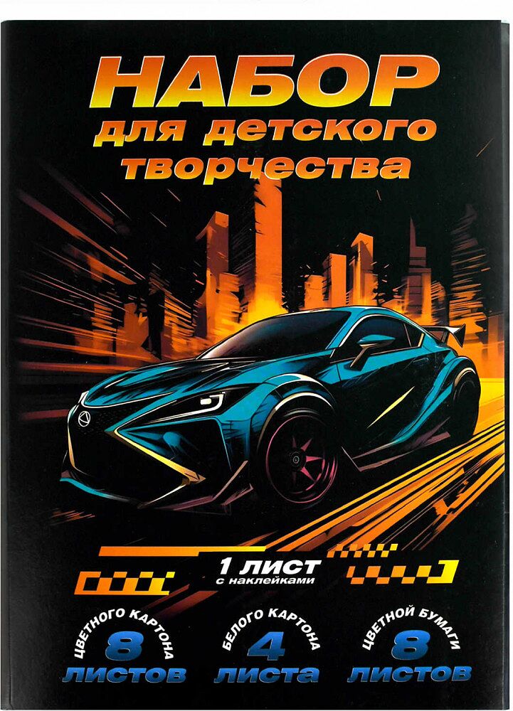 Это идеальный выбор для увлекательных занятий. Разнообразие материалов в комплекте позволяет создавать оригинальные поделки, развивая воображение, мелкую моторику и творческие навыки. Такой набор станет отличным помощником в создании красочных аппликаций, открыток и других креативных проектов. Состав набора: • цветной картон — 8 листов. • белый картон — 4 листа. • цветная бумага — 8 листов. • один лист с наклейками.