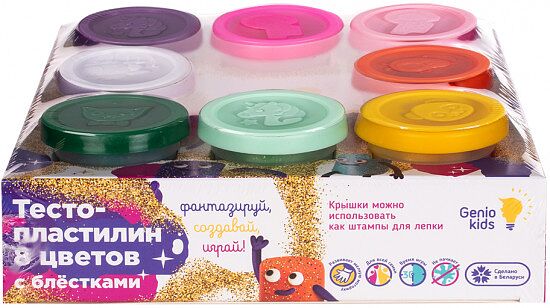 Тесто-пластилин Genio Kids — это отличный способ развития творческих способностей малыша и увлекательное занятие для маленьких непосед. Добавьте блеска своим творениям с этим набором из 8 цветов высококачественного, мягкого теста-пластилина. При помощи набора теста ребёнок может создавать фигурки различных форм и видов. Особенности: блёстки в составе