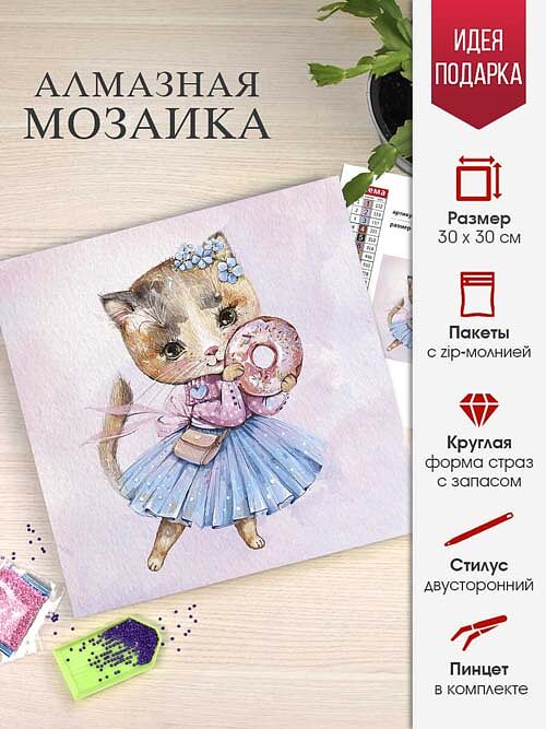 Набор для творчества Алмазная мозаика МИЛАЯ КОШЕЧКА, размер: 30*30 см