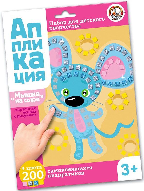 Аппликация состоит из 1 цветной картонной карточки размером 20х16 см и 4 цветных блоков. Ребенку необходимо украсить картинку объемными самоклеящимися квадратиками. Этот процесс превосходно разовьет моторику неловких пальчиков и стимулирует творческие наклонности. Порядок работы: - подберите квадратик по цвету. - отделите самоклеящейся квадратик от блока. - приклейте квадратик на картонную основу, на соответствующее его цвету место. Состав набора: - картонная карточка с напечатанным цветным рисунком (размер 20х16 см). - самоклеящиеся квадратики (7х7х2 мм) 4 цветов (по 50 штук). Набор рекомендуется для детей в возрасте от 3 лет.