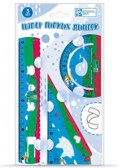 Набор гибких линеек это не только необходимый в учебе предмет, но и легкий способ привлечь ребенка к процессу обучения, ведь с такими линейками чертить и отмерять намного интереснее. Состав набора: линейка — 20 cм, треугольник с углом 60 градусов, линейка-транспортир — 180 °.