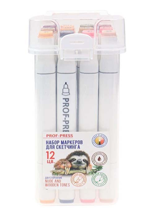 Набор маркеров двуст для скетчинга NUDE AND WOODEN TONES 12шт.(МП-2163) скош/пул нак, черный корп
