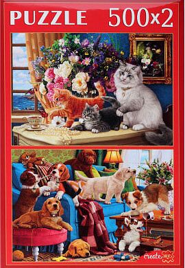 НАБОРЫ ПАЗЛОВ 2в1 (500+500) ДОМАШНИЕ ЛЮБИМЦЫ