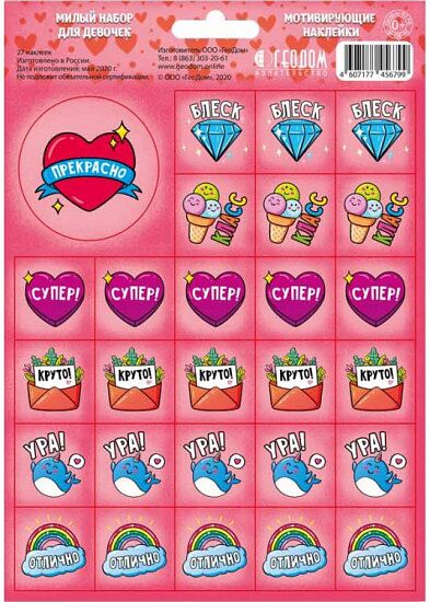 Огромное значение для успешного обучения детей дошкольного возраста и первоклассников, имеет положительная оценка выполненных ими заданий. Наши наклейки помогут сделать это в забавной игровой форме. Для наклеек использован позитивный и интуитивно понятного для детей контент. На листе 27 мотивирующих наклеек и при этом одна из них супер-наклейка.