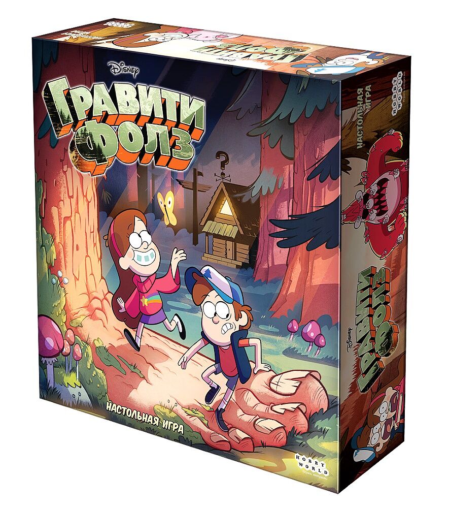 Добро пожаловать в Гравити Фолз, где вас ждут лучшие каникулы на свете!Вместе с Диппером и Мэйбл вы побываете в Зачарованном лесу и сыграете в мини-гольф в Королевском клубе… когда-нибудь потом. Сейчас есть дела поважнее – по городу шастают монстры.Гравити Фолз – это кооперативная настольная игра, в которой вам предстоит сплотить жителей городка и победить всех монстров. Время дорого – каждый ход настраивает соседей против вас. Если вы не поторопитесь, терпение жителей иссякнет, и брату с сестрой придётся вернуться домой на автобусе.Гравити Фолз – одни плюсы!Кооперативная игра для всех возрастовСыграй за любимых персонажей мультсериалаНастраиваемый уровень сложностиКомплектацияИгровое поле20 кубиков храбрости14 фишек персонажей и монстров14 подставок51 двусторонний жетон поддержки и недоверия5 карт персонажей5 памяток9 карт монстров30 карт действий18 карт проклятий23 карты движения монстров8 карт событий7 специальных кубиковПравила игрыРазмер карт: 63х89 мм (рекомендуются протекторы из данного раздела, 93 шт.)Продолжительность игры: от 45 до 60 минут.Количество игроков: 1-5 человек.Возрастные ограничения: 8 лет и старше.Сделано в России.