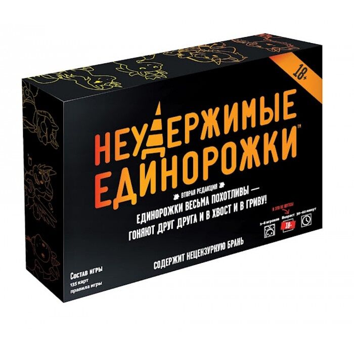 Неудержимые единорожки – это весёлая карточная игра, которая украсит собой любую вечеринку. И ещё бы, ведь рецепт этой настолки невероятно прост и изыскан: милые единороги и поразительные разрушения! Игра начинается с малыша-пони, и даже не думайте привязываться к этому очаровательному созданию – вряд ли оно выживет. Этот мир магии и блёсток жесток... Задача игрока – собрать армию из волшебных единорогов прежде, чем это сделают соперники. С ордой безумных волшебных единорогов вы точно завладеете вселенной! Во всяком случае, до следующего раунда. 18+