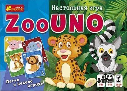 Легкая и интересная карточная игра для всей семьи или компании друзей. «ZooUNO» подойдет даже детям, которые еще не совсем хорошо знают цифры - они смогут ориентироваться по рисункам животных. Основная цель каждого игрока - избавиться от всех карт. А когда остается на руках 1 карта, громко прокричать «Зооуно!». Вперед к победе!
