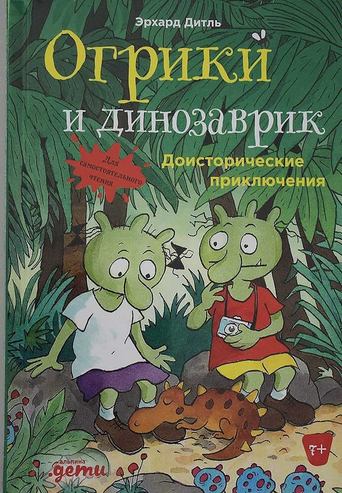 Самая захватывающая история из приключений Огриков! Отправляемся в путешествие во времени вместе с зелёными непоседами. Профессор Шипучкин забросил Огриков далеко-далеко в прошлое, где им предстоит бегать по джунглям в поисках мамы малыша-динозаврика и спасать его от опасного птерозавра.Ваш юный любитель приключений и динозавров проглотит эту историю за пару вечеров и точно попросит продолжения!Для активных, непоседливых детей от 7 до 10 лет.