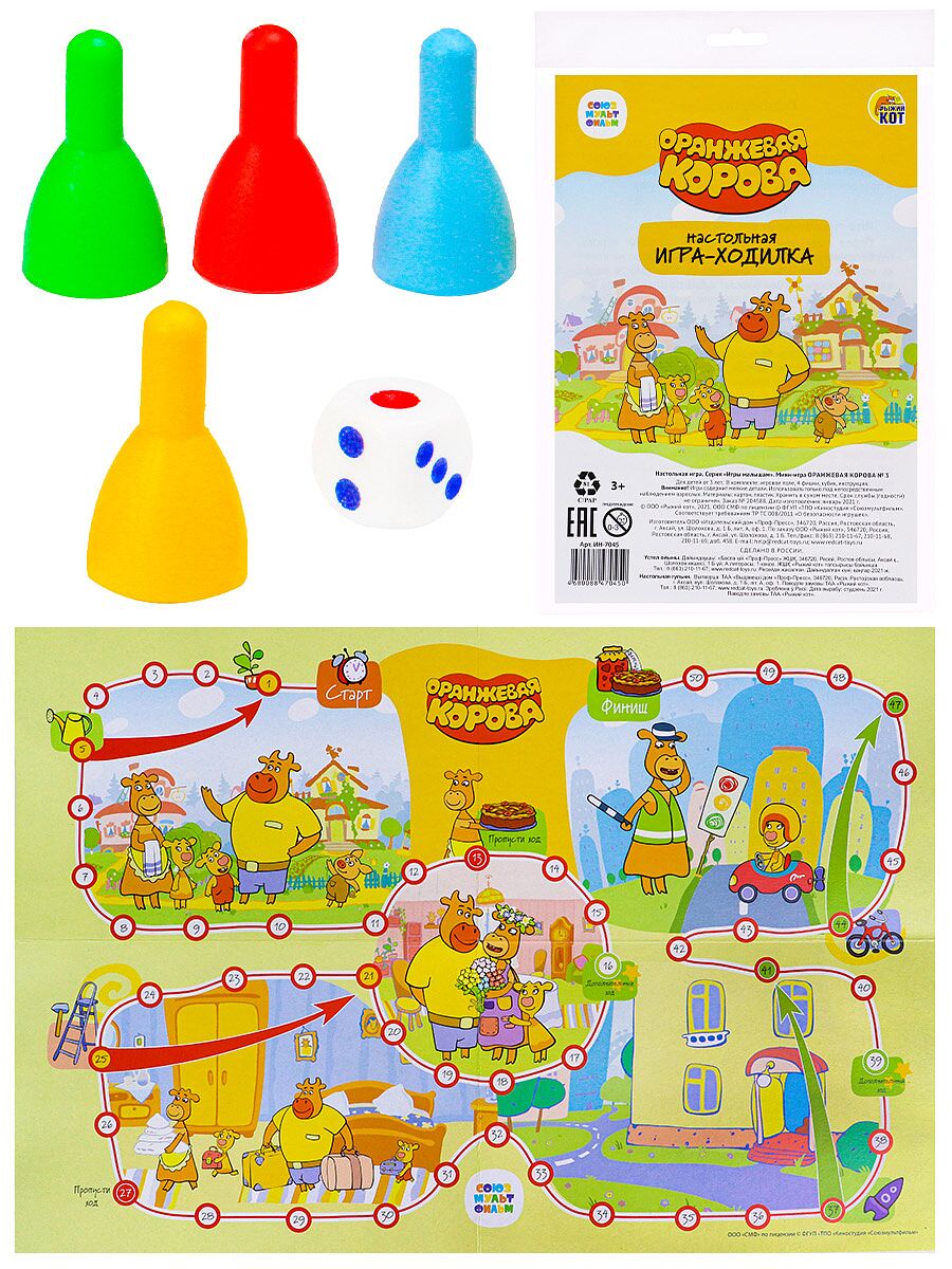 Настольная игра от компании Рыжий кот - это настоящее путешествие, в которое вам захочется отправиться с друзьями. Вы подружитесь с любимыми героями и посоревнуетесть, кто первым придёт к финишу. Участники кидают кубик и ходят вперёд на выпавшее количество клеток. В процессе игры ребёнок тренирует память, учится считать, соблюдать правила и очередность ходов, выигрывать и проигрывать без слёз. С захватывающей и интересной игрой дети и их родители весело проведут своё свободное время дома, в дороге и на даче. В наборе: красочное игровое поле, фишки, кубик.