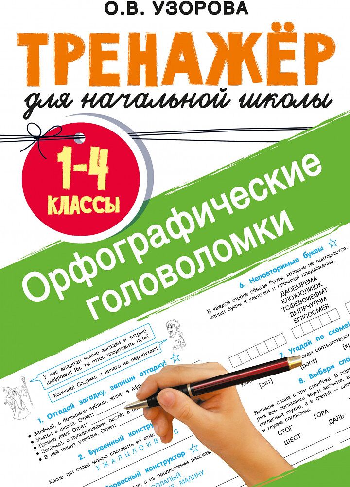 «Орфографические головоломки» — это сборник заданий по русскому языку, основанный на авторской методике известного педагога-практика О. В. Узоровой. Ребусы, загадки, кроссворды, шифровки и другие занимательные головоломки помогут ребёнку закрепить в памяти орфограммы, изучаемые в начальной школе. Благодаря волшебному сюжету процесс обучения будет интересным. Вместе с мальчиком Яном ученик отправится в Страну необыкновенных заданий, где его ждёт множество увлекательных и полезных приключений. Разгадав все головоломки, ребёнок приобретёт знания, которые позволят ему без труда справиться с любой контрольной или проверочной работой в школе.