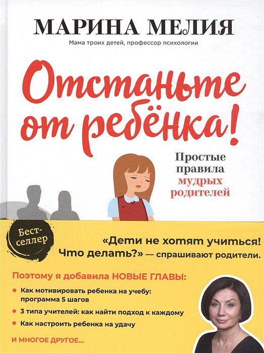 Книга для ответственных родителей, мгновенно ставшая бестселлером, - теперь с новыми главами! Мы все хотим вырастить детей успешными, самостоятельными, счастливыми. И поэтому активно организуем их жизнь, контролируем поведение, постоянно одергиваем и корректируем. Но наши усилия повлиять на другого человека, прямо воздействуя на него, почти бесполезны. Марина Мелия - психолог с сорокалетним стажем практической работы - предлагает более эффективный путь: оставить детей в покое и перевести фокус внимания на самих себя, на собственные слова и поступки. В новом издании автор отвечает на самые популярные вопросы родителей: как заставить детей учиться? Как добиться, чтобы они самостоятельно делали уроки? Как запрограммировать их на удачу? Как правильно выстроить отношения с учителем? И многие другие. 2-е издание, дополненное.