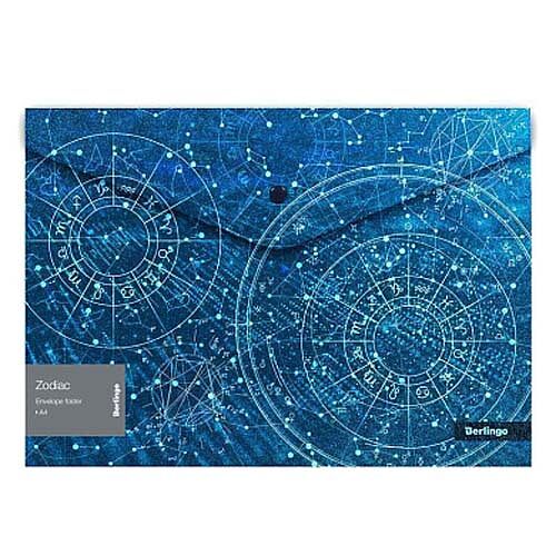 Папка-конверт на кнопке Zodiac А4, 180мкм, с рисунком, глиттер-эффект