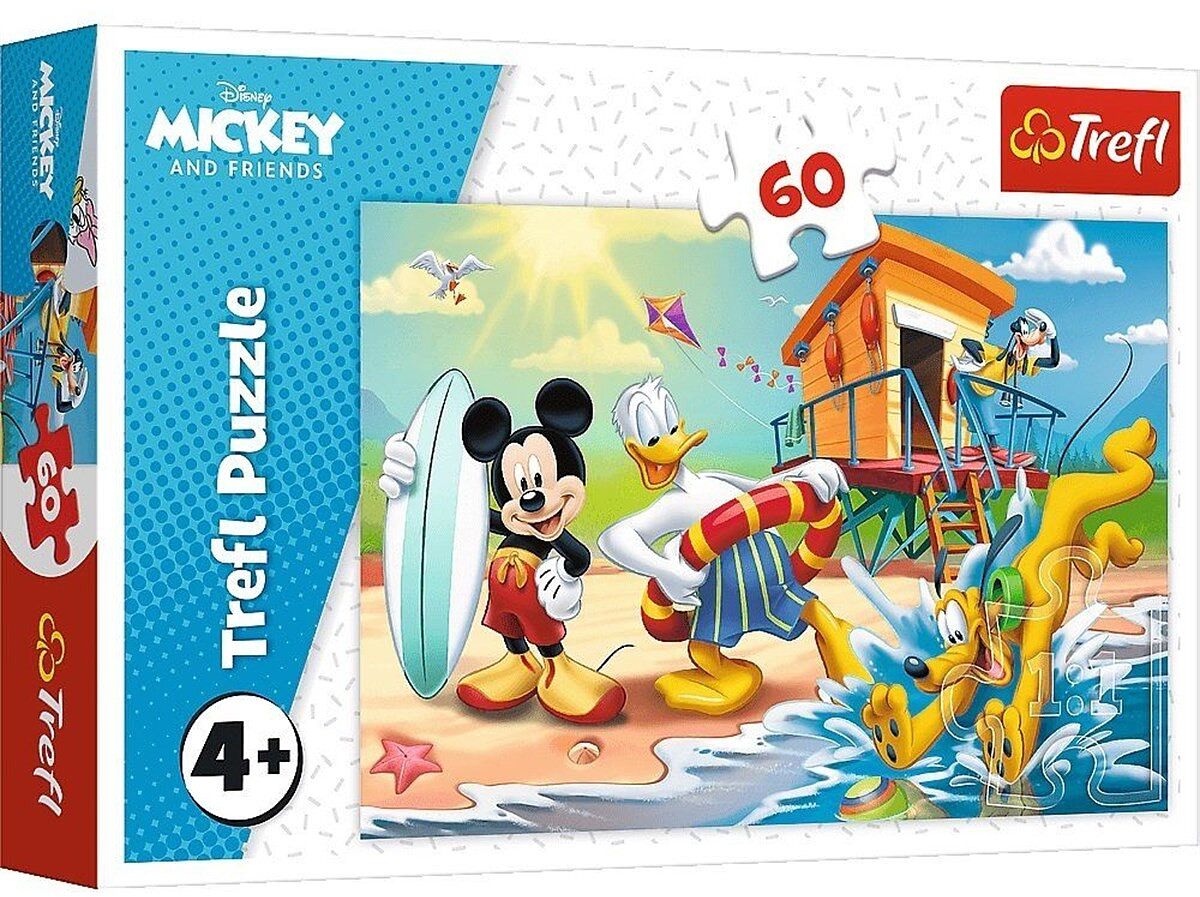 Пазлы Trefl Интересный день посвящен героям популярного мультика. Ребенку предлагается собрать картинку состоящую из 60 элементов, на которой изображен Микки Маус со своими друзьями. Все пазлы от польского производителя Trefl создаются на высокоточном оборудовании. Это позволяет добиться идеальной стыкуемости элементов. Сами пазлы созданы из прочного картона.