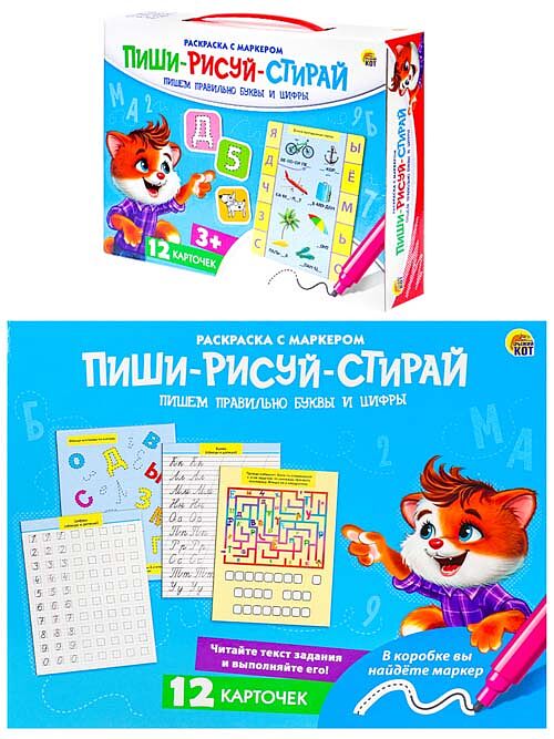 ПИШИ-РИСУЙ-СТИРАЙ. ПИШЕМ ПРАВИЛЬНО БУКВЫ И ЦИФРЫ (Новая коробка) Арт. ИН-1416