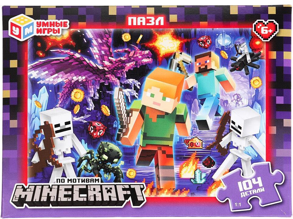 По мотивам Minecraft. Пазлы в коробке 104 детали.
