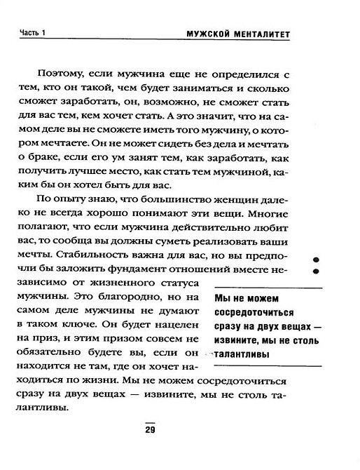 Почему даже самые умные, успешные и привлекательные женщины не всегда понимают поступков мужчин и несчастливы в личной жизни? По мнению автора этой книги, ведущего суперпопулярной в США радиопередачи, посвященной взаимоотношениям, проблема в том, что женщины обращаются за советом к другим женщинам. Хотя мужчина лучше знает, как найти и удержать мужчину. В этой книге Стив Харви дает прекрасную возможность понять ход мыслей представителей сильного пола, отвечая на множество наболевших вопросов. Например, таких: Что вы должны, а что не можете требовать от своего мужчины?, Как распознать маменькиного сыночка и что делать в этом случае?, Когда знакомить кавалера со своими детьми?, Какие пять вопросов нужно задать мужчине, чтобы определить серьезность его намерений?. Забавная, а местами суровая, но всегда правдивая, - эту книгу нужно прочитать, если вы хотите узнать, что на самом деле думают мужчины об отношениях с женщинами.