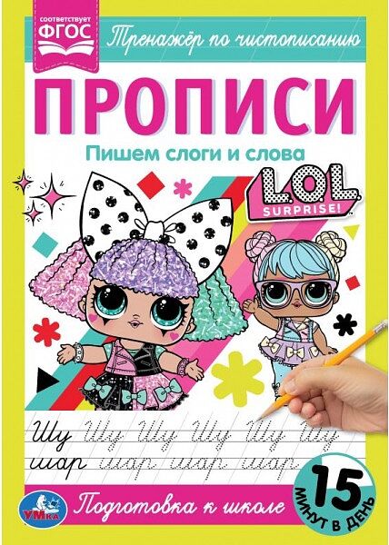 Прописи «ЛОЛ. Пишем слоги и слова» ТМ «УМка» — это настоящий тренажёр по чистописанию: • подготовка к школе. • интересные иллюстрации с любимыми персонажами. • учимся писать курсивными буквами. • соответствует ФГОС. Ребёнок будет рад повстречаться на страницах этой занимательной раскраски с очаровательными малышками ЛОЛ. Он с удовольствием будет раскрашивать красивые картинки с чётким контуром, а также тренироваться в написании частей слова и целых слов курсивными буквами. Для достижения эффективных результатов достаточно заниматься с детьми по 15 минут в день — главное, поддерживать их интерес и хвалить за успехи.