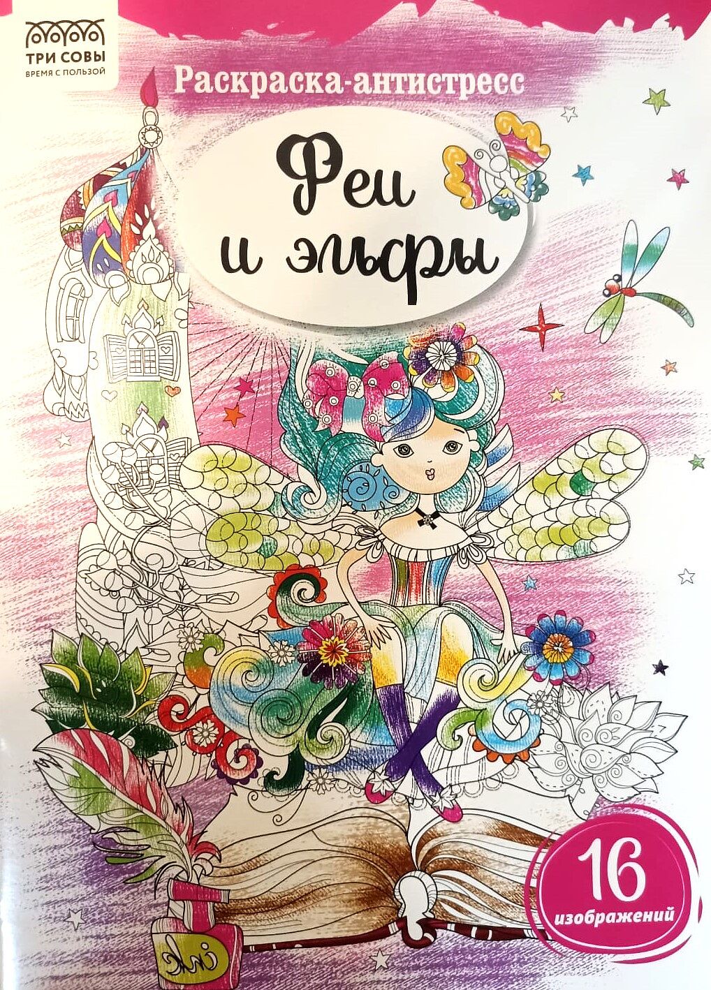 Раскраска А4, 16 стр., ТРИ СОВЫ Антистресс. Феи и эльфы