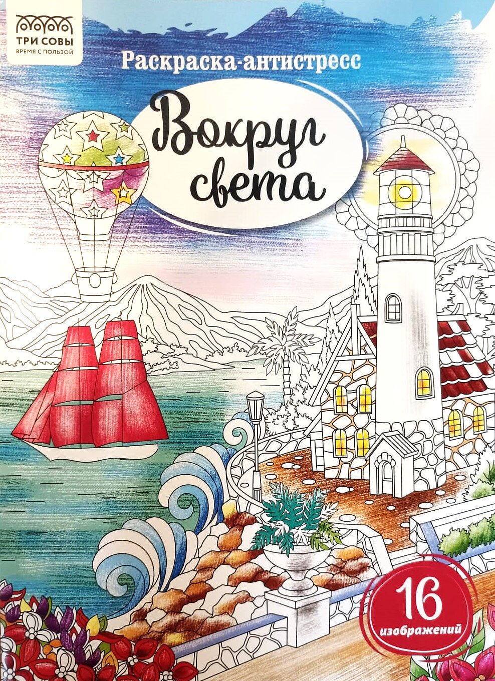 Раскраска А4, 16 стр., ТРИ СОВЫ Антистресс. Вокруг света
