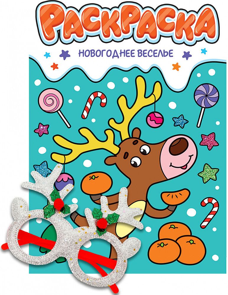 Серия «Новогодняя раскраска» — это прекрасный подарок для ребёнка. Красивые иллюстрации создадут праздничное настроение и увлекут мальчишек и девчонок на долгое время. Раскраска большого размера, бумага в блоке достаточно плотная, чтобы дети могли использовать для раскрашивания как карандаши, так и фломастеры. В комплекте к раскраске идут сверкающие новогодние очки с рожками. Этот аксессуар сделает новогодний образ еще более праздничным!