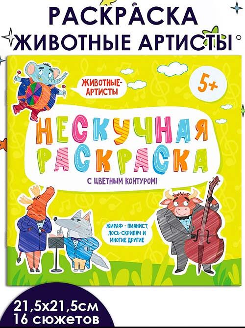 Раскраски с цветным контуром из серии Нескучная раскраска ЖИВОТНЫЕ-АРТИСТЫ