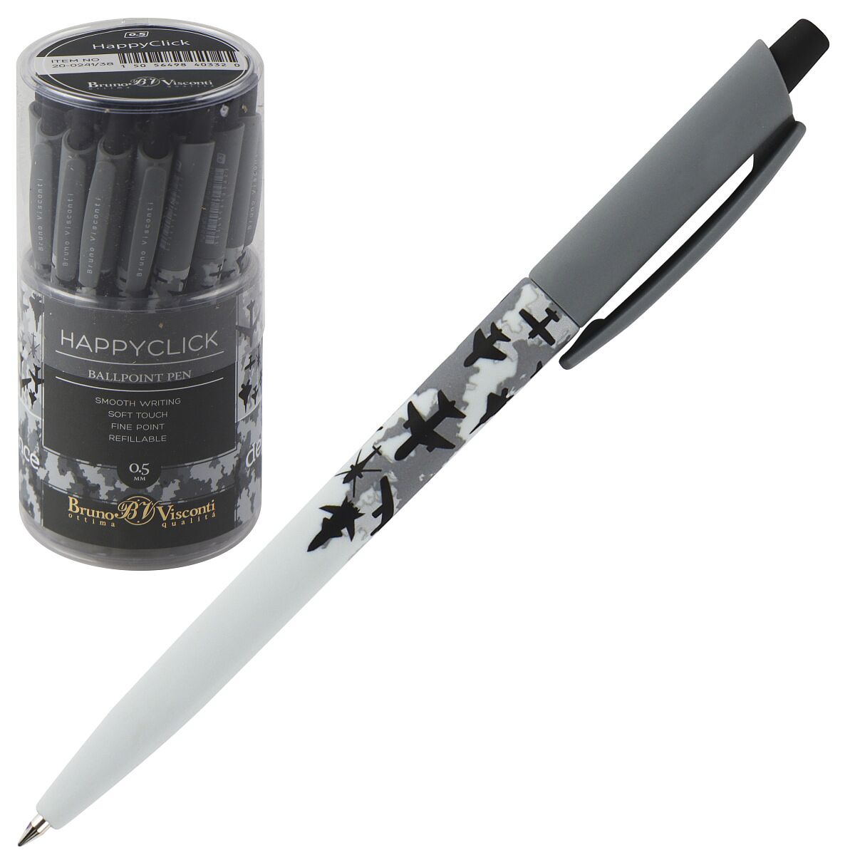 Ручка шариковая автоматическая - синий стержень 0.5мм. HappyClick. Военный паттерн. Самолеты