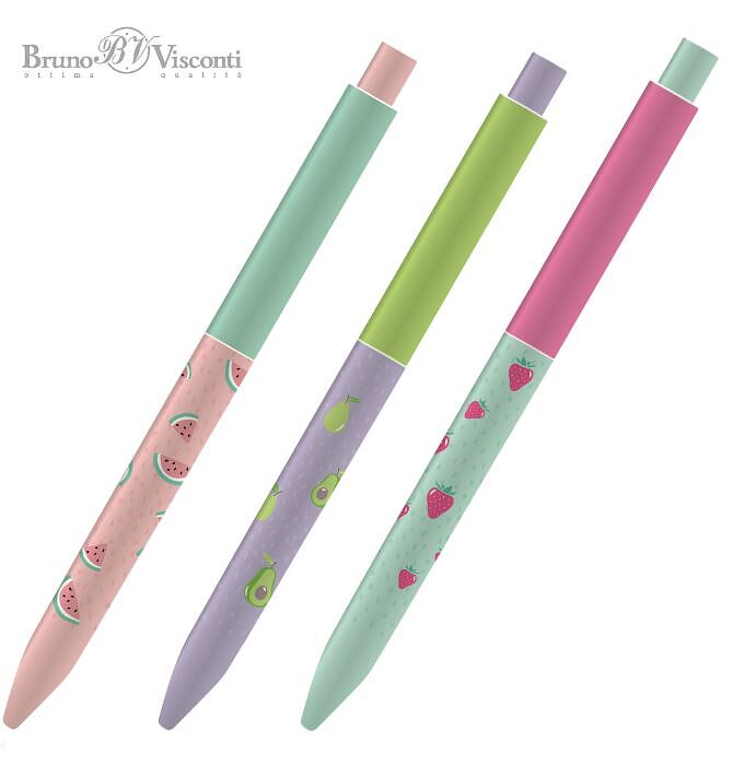 Ручка шариковая - синий стержень 0.7мм. FunClick. Fruit Rain
