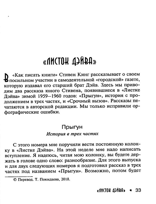 Вы хотите познакомиться с двумя самыми первыми рассказами, которые Стивен Кинг написал еще в 12 лет?Узнать историю о том, как он пробивался к своим первым публикациям?Какие книги он любит больше всего и постоянно перечитывает?Как относится к собственной славе?И есть ли что-то, что пугает самого Стивена Кинга?В этой книге вы найдете ответы на эти и многие другие вопросы, также в ней собраны профессиональные советы начинающим авторам, еще только ищущим свой стиль и почерк, редкие статьи, интервью и нехудожественные работы Мастера.