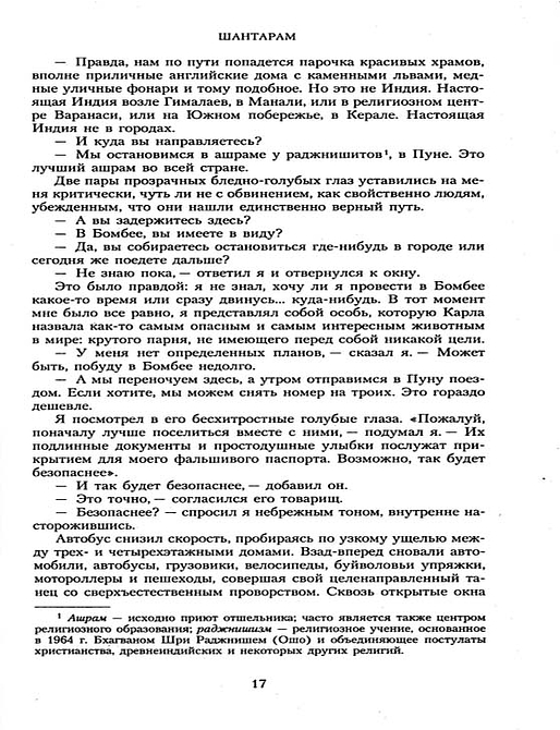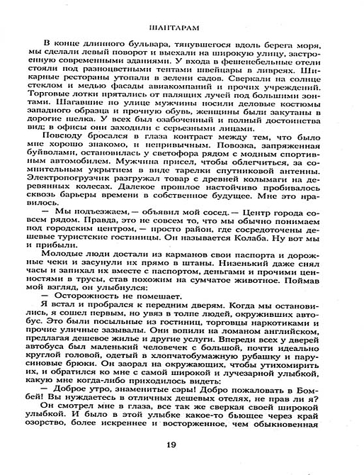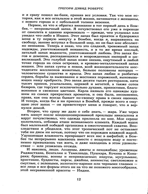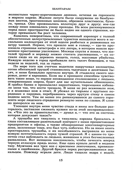 Исповедь человека, который сумел выбраться из бездны и уцелеть, протаранила все списки бестселлеров и заслужила восторженные сравнения с произведениями лучших писателей нового времени, от Мелвилла до Хемингуэя. Подобно автору, герой этого романа много лет скрывался от закона. Лишенный после развода с женой родительских прав, он пристрастился к наркотикам, совершил ряд ограблений и был приговорен австралийским судом к девятнадцати годам заключения. Бежав на второй год из тюрьмы строгого режима, он добрался до Бомбея, где был фальшивомонетчиком и контрабандистом, торговал оружием и участвовал в разборках индийской мафии, а также нашел свою настоящую любовь, чтобы вновь потерять ее, чтобы снова найти...