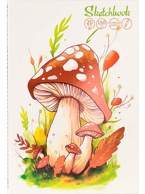 Скетчбук А5+, 20л., ГРИБЫ В ЛЕСУ (20-1673) тетр. сшивка,150гм2 для маркеров твин-лак, хол. фольг.