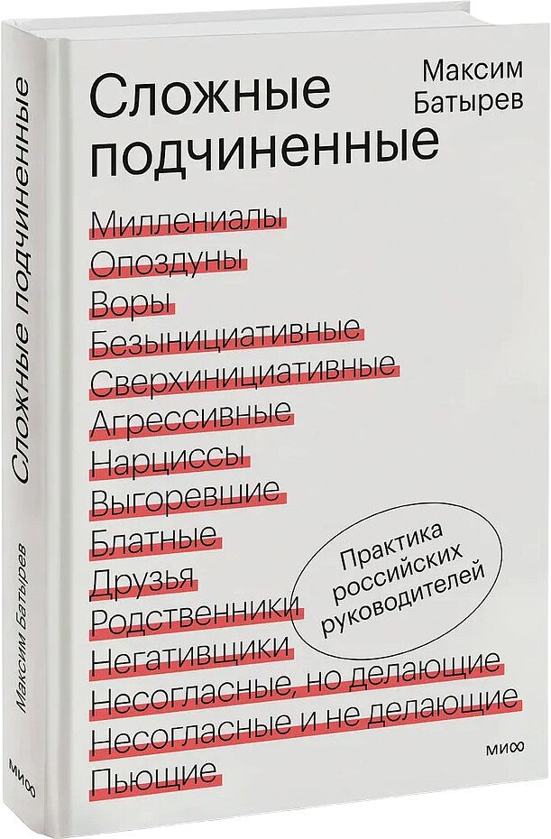 Известный российский менеджер Максим Батырев на основе 2000 кейсов написал книгу о том, как найти подход к трудным сотрудникам. В любой команде есть сложные сотрудники, которые портят отношения в коллективе, влияют на общую продуктивность и мешают построить команду мечты. Увольнение — крайняя мера, известный российский менеджер Максим Батырев предлагает другой способ — найти подход к проблемному подчиненному и переманить его на свою сторону. Перед тем как написать эту книгу, автор собрал и проанализировал несколько тысяч кейсов российских менеджеров. Получилось 15 категорий сложных сотрудников — от опоздунов и безынициативных до выгоревших и нарциссов. Это основные типы, которые встречаются в каждой компании. Батырев описывает их в книге и рассказывает, как с ними работать. Все советы проверены на практике.