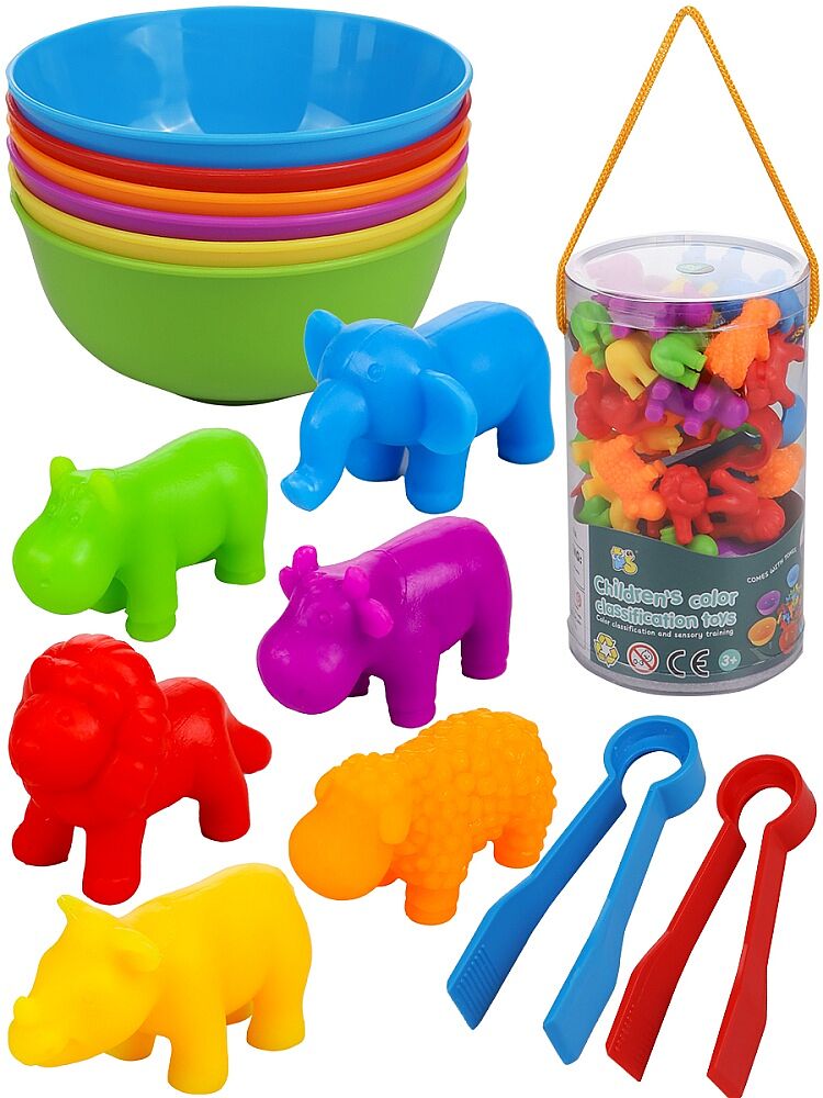 Сортер — это развивающая игрушка, принцип которой основан на сортировке предметов по разным признакам: цвету, размеру и форме. Развивающая игрушка-сортер очень полезна для ребенка. Подбирая фигурки, ребенок изучает формы и цвета, учится сравнивать и анализировать, развивает логику и память, ловкость, мелкую моторику и координацию. В наборе: 36 фигурок, 6 цвет. тарелок, 2 пинцета. Размер: 17х9х9см. В тубе.